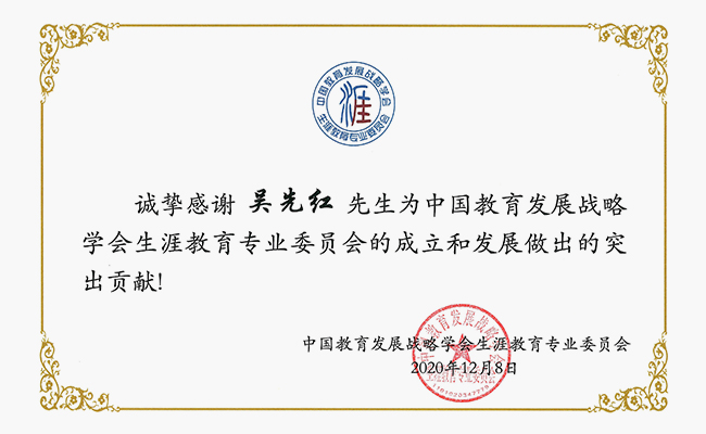 中国教育发展战略学会生涯教育专业委员会感谢信